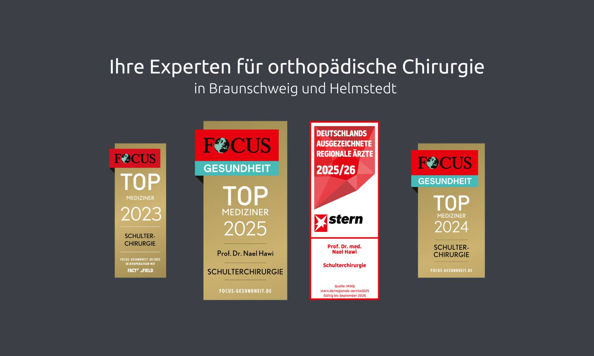 Wir freuen uns, auch in diesem Jahr wieder mit dem renommierten FOCUS-Gütesiegel im Bereich der Schulterchirurgie und der Sportorthopädie ausgezeichnet worden zu sein.